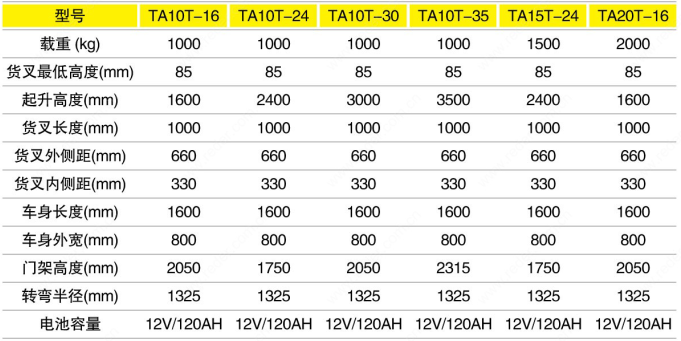 手推电升堆垛车规格: